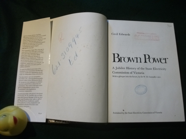 Brown Power: A Jubilee History Of The State Electricity Commission Of Victoria (1st edition) by Cecil Edwards. State Electricity Commission of Victoria, 1969
