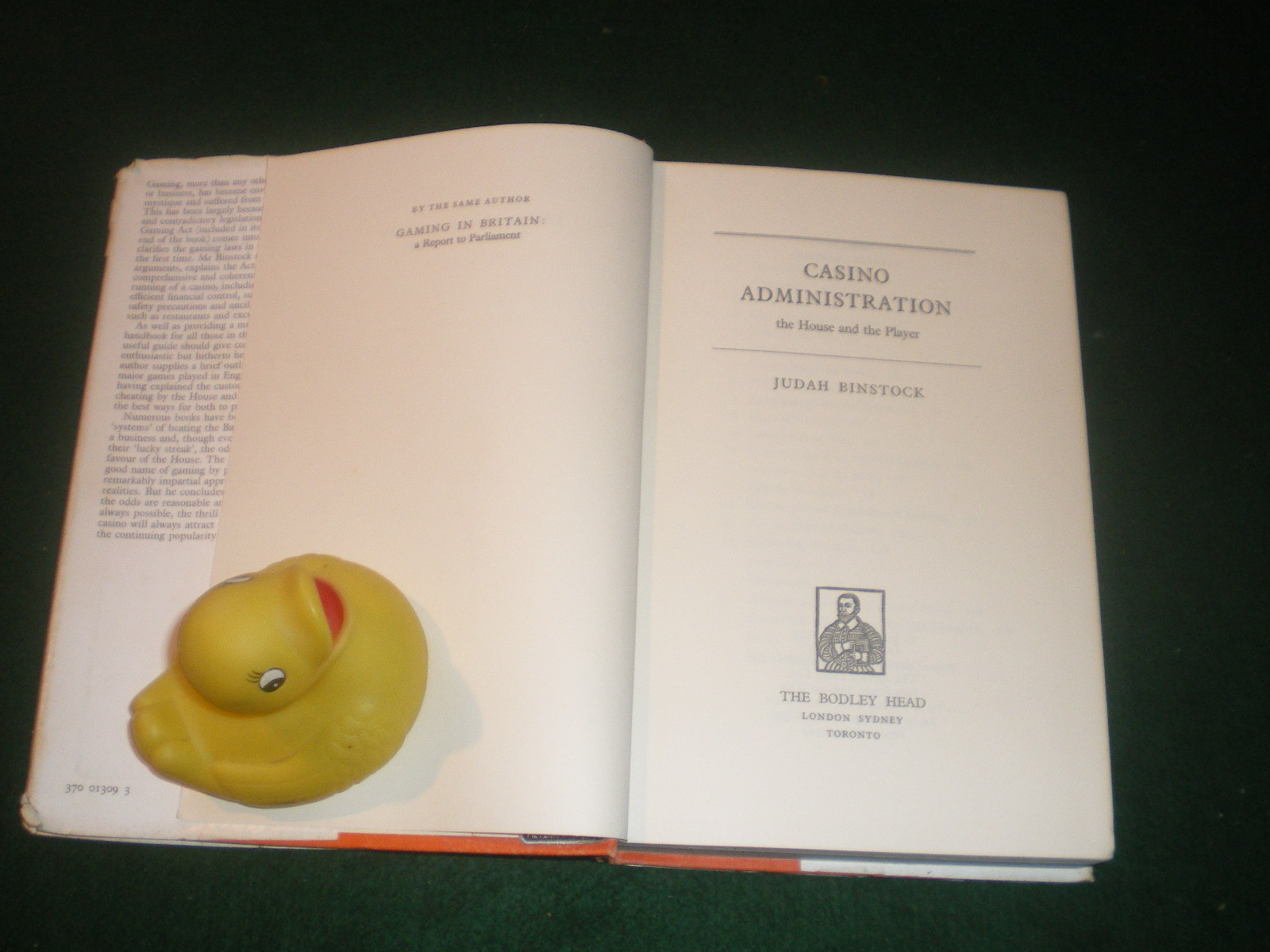 Casino Administration: The House And The Player (1st edition) by Judah Binstock. The Bodley Head, 1969.