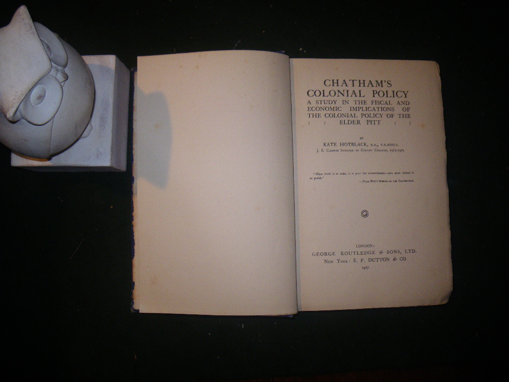 Chatham’s Colonial Policy (1st edition) by Kate Hotblack. George Routledge and Sons, 1917
