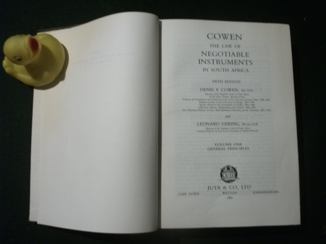Cowen – The Law Of Negotiable Instruments In South Africa: Vol I: General Principles by Denis Cowen and Leonard Gering. Juta and Co, 1985