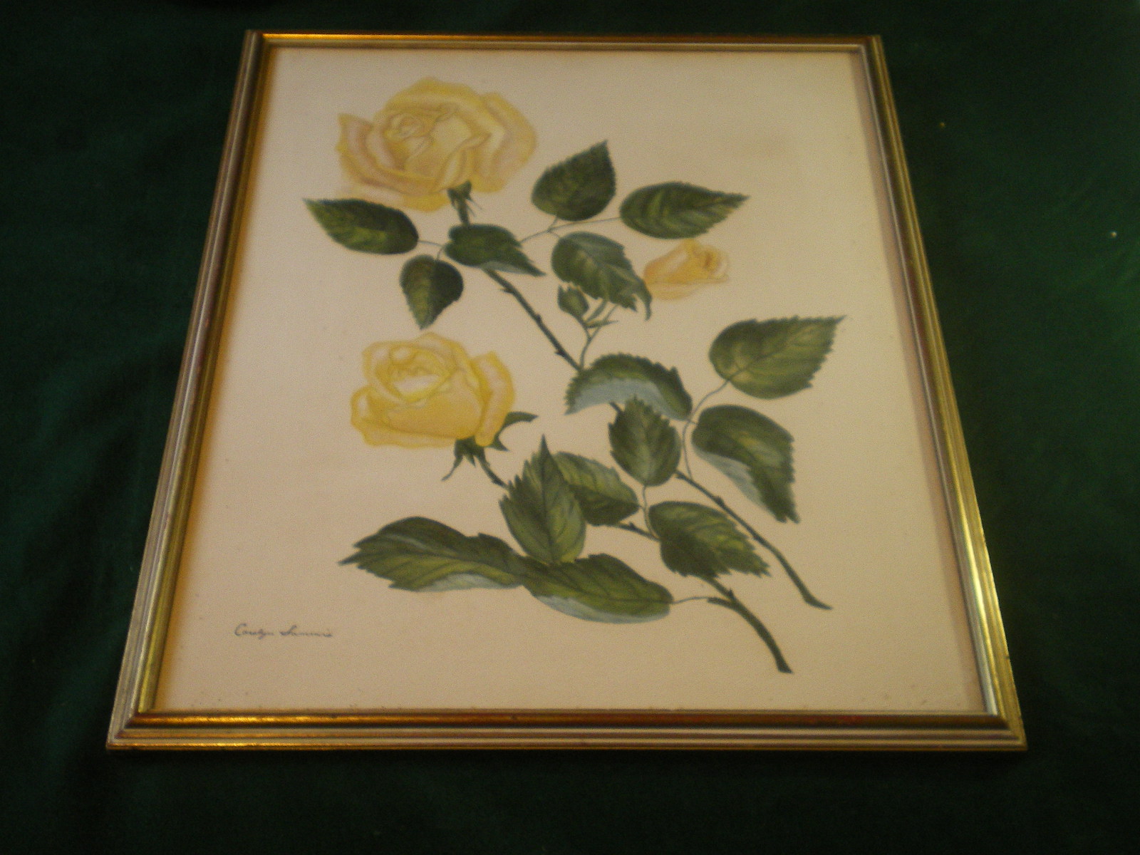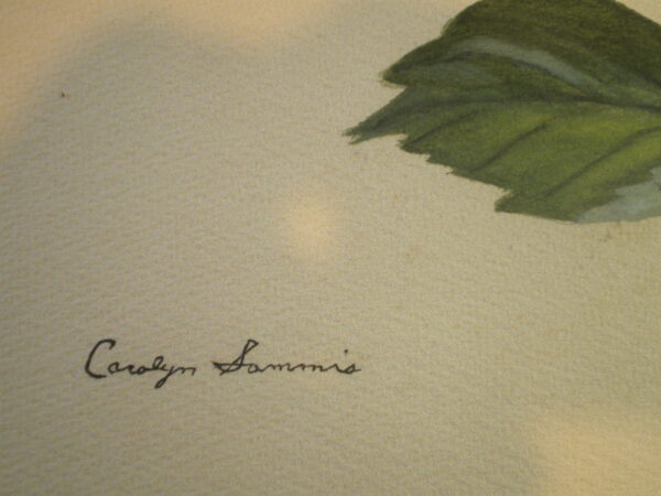 Original botanical watercolour or goache Carolyn Sammis Samrie ? .. I found this work professionally protected in shrink wrap for moving or storage . It is exquisite and framed very professionally in non reflective glass. Nobody goes to that trouble for something that is not special or valuable but I cannot come up with a reference for the artist so selling it at beauty value only .. frame 53cm by 44 cm