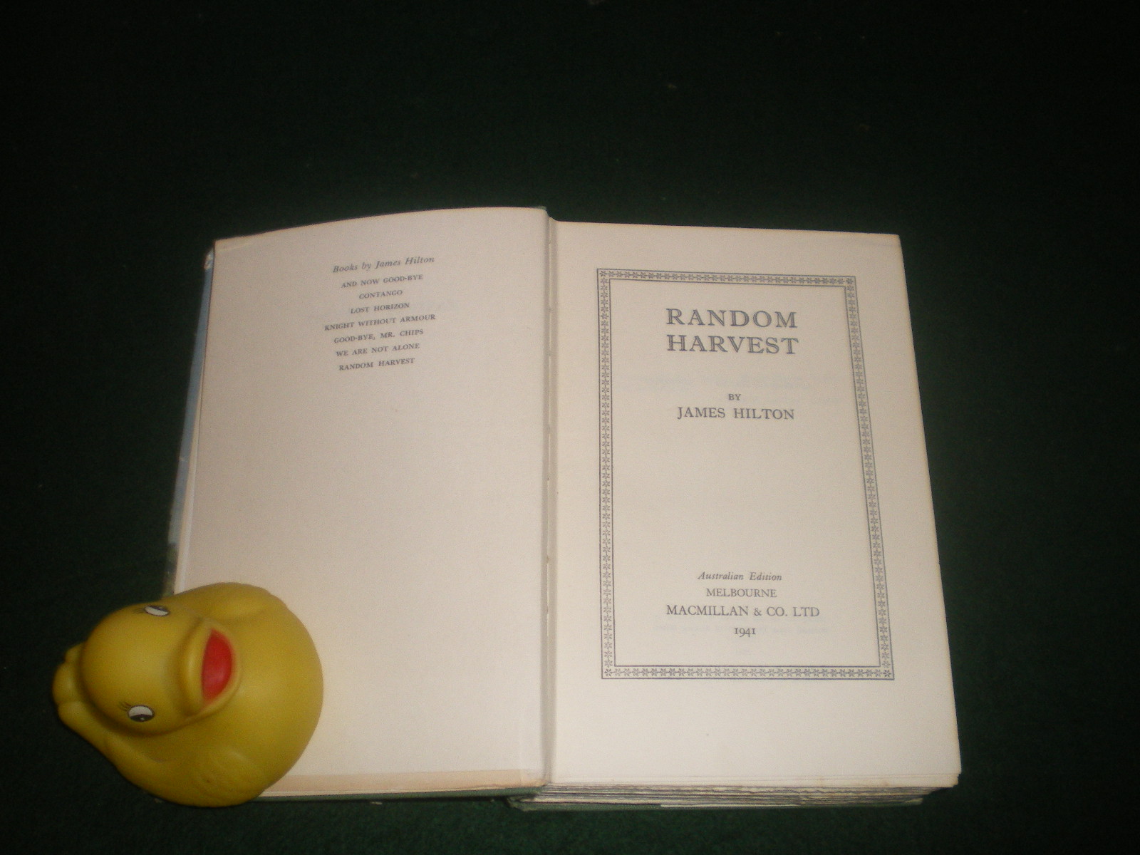 Random Harvest (1st edition) by James Hilton. Macmillan and Co, 1941.